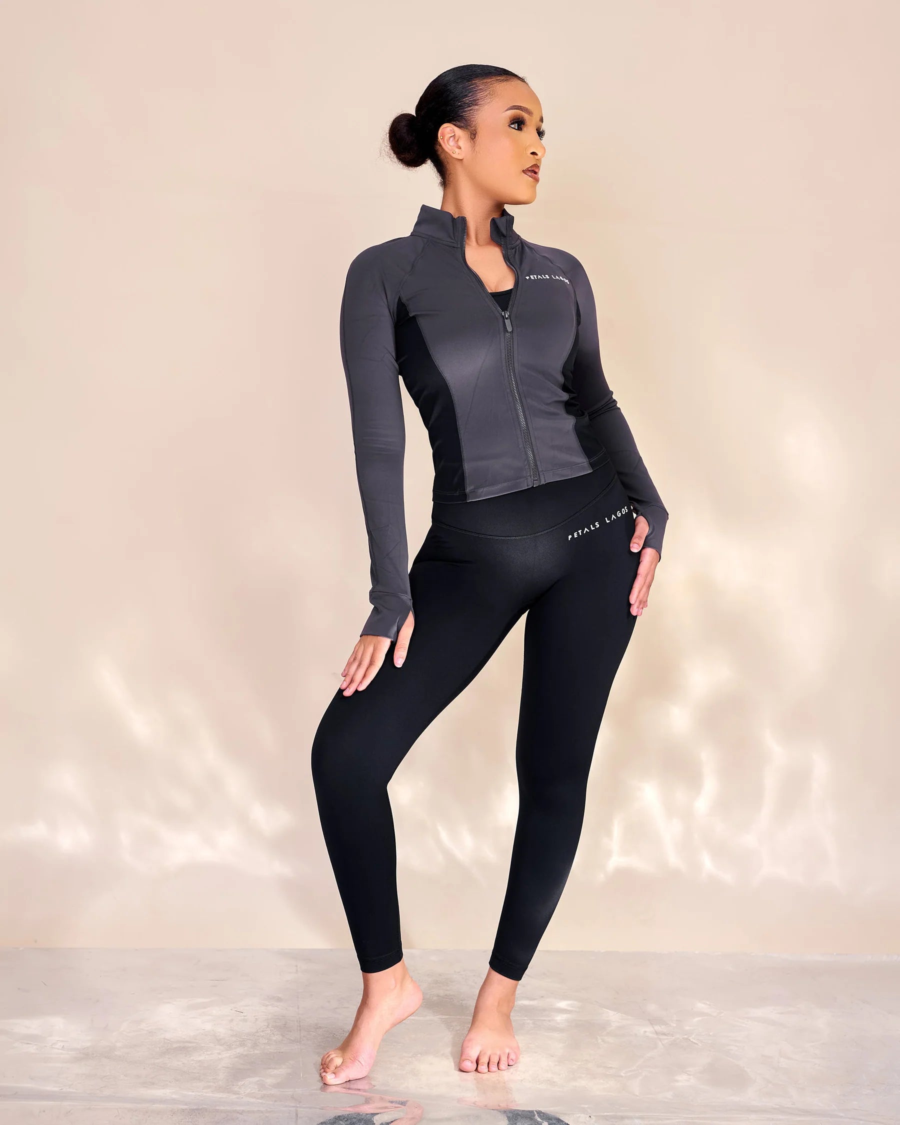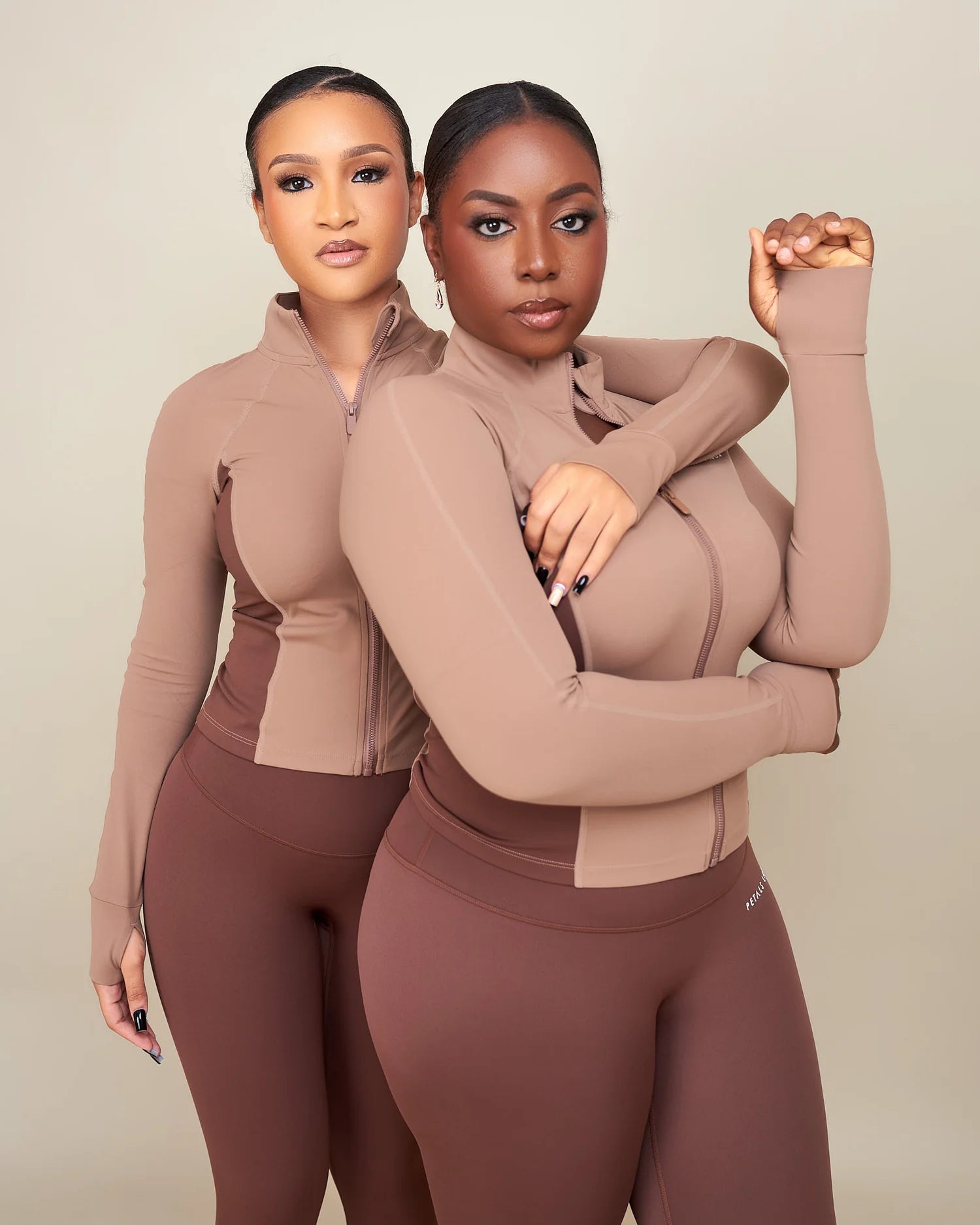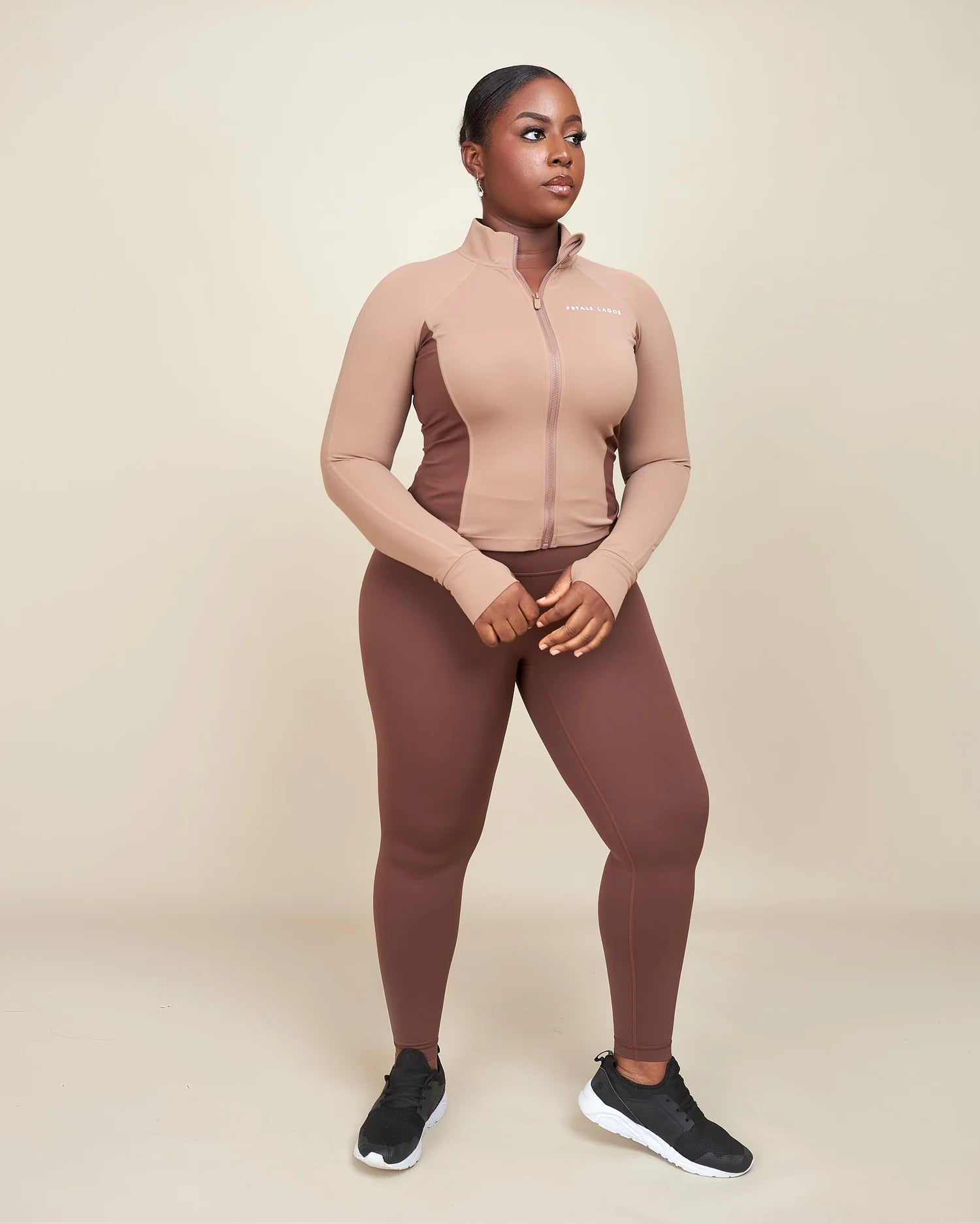 Experience true luxury in the Jenaiah Neutral Blend High Impact Leggings Set. Featuring a beautiful nude and brown combo, this fashionable leggings set includes a stylish jacket and leggings for the perfect fashionable ensemble. Made with high-impact fabric, this stylish set is a must-have for trendsetters everywhere.